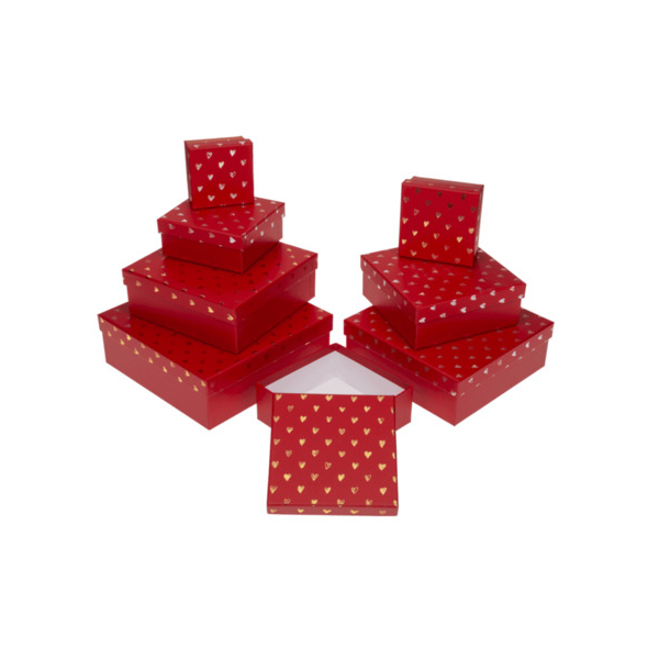 Geschenkkarton Shiny Hearts rot