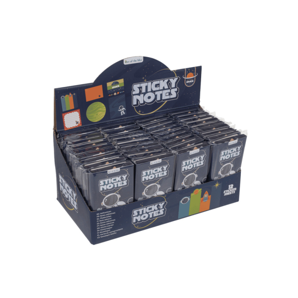 Praktisches Haftnotiz-Set im Space-Design, sortiert in sechs verschiedenen Größen. Ideal für Notizen, Erinnerungen und kreative Ideen.