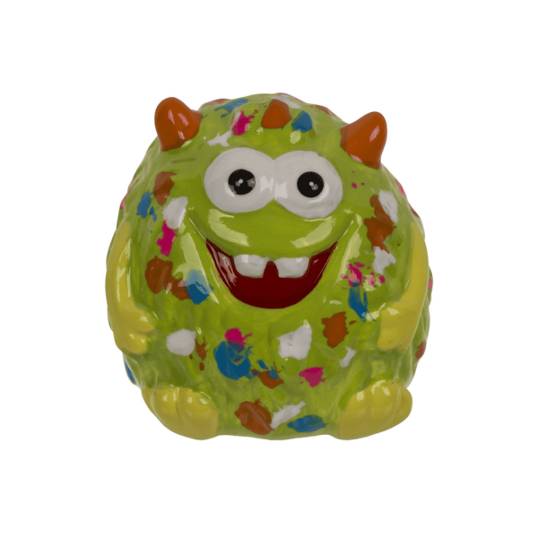 Kleine Spardose aus Keramik in lustigem Monster-Design. Die Spardosen sind in vier verschiedenen Motiven sortiert und ca. 6 x 6 cm groß. Mit praktischem Stopper auf der Unterseite für einfaches Entnehmen der Münzen. Geliefert werden sie im Display, ideal als Geschenk oder Dekoration.