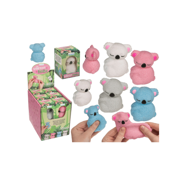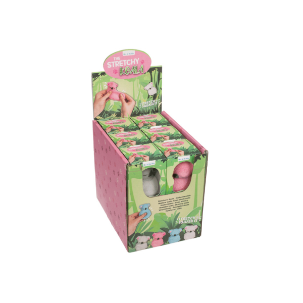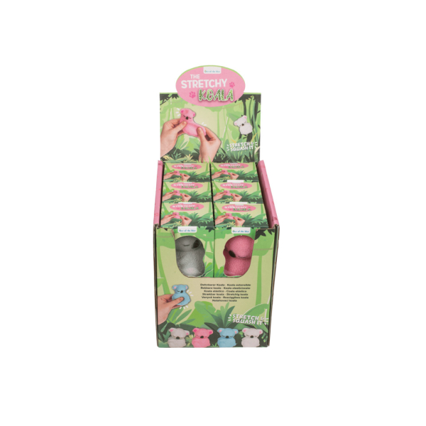 Die niedliche Stretch-Figur Koala ist ca. 7,5 cm groß und in vier verschiedenen Farben sortiert. Durch das dehnbare Material lässt sie sich ziehen, drücken und knautschen – ideal zum Spielen, Stressabbau oder einfach als lustiges Mitbringsel. Jede Figur ist liebevoll in einer Geschenkverpackung verpackt und wird im praktischen Display präsentiert.