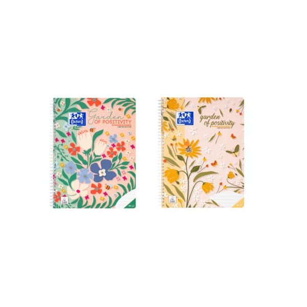 Oxford Collegeblock 400184312, Garden, Lineatur 27 / Lin 27 | liniert mit Doppelrand, A4+, 80g, Motiv sortiert, 80 Blatt