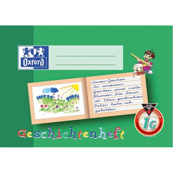 Oxford Geschichtenheft 100050103, Lineatur 1G / Schreiblern-Lineatur / keine, A5 quer, 90g, grün, 16 Blatt / 32 Seiten