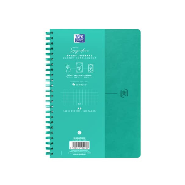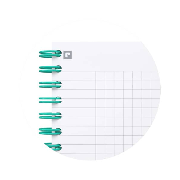 Das Notizbuch verfügt über ein Deckblatt, auf dem Sie Ihren Namen eintragen können, falls es einmal verloren geht. Die stilvolle türkisfarbene Doppelspiralbindung erlaubt es Ihnen, das Buch flach zu legen oder um 360° umzuschlagen, sodass Sie beim Schreiben immer die optimale Bewegungsfreiheit haben.