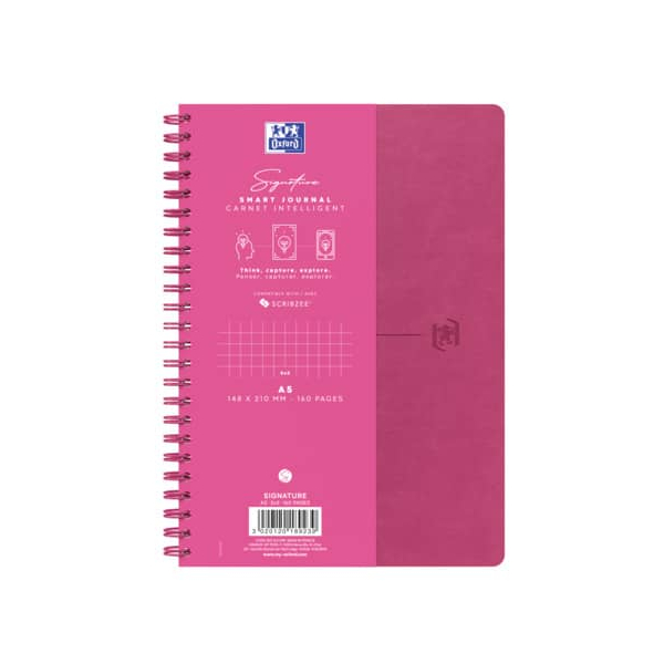Oxford Notizbuch 400163298, Signature, pink, A5, kariert, 80g, 80 Blatt / 160 Seiten