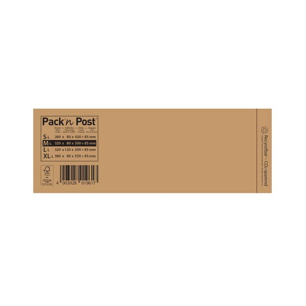 Pack'n Post Faltentaschen 30117415, Sonderformat, ohne Fenster, haftklebend, 80mm-Falte, 110g, braun