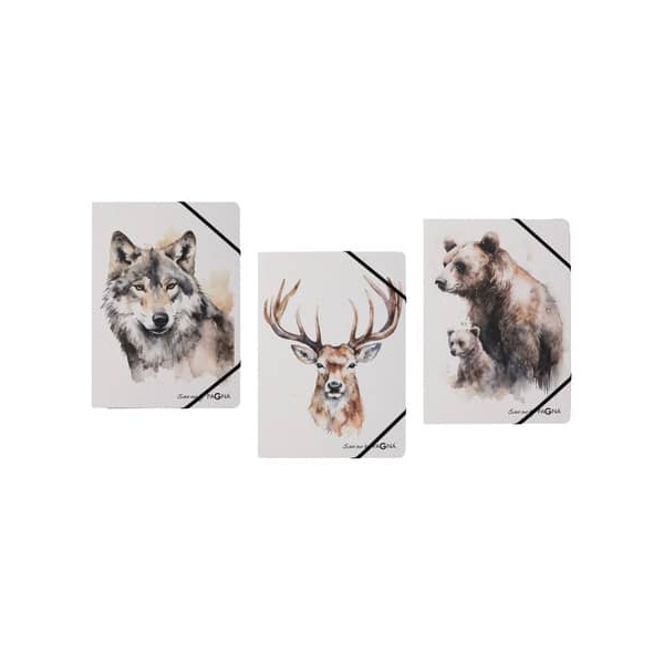 Entdecken Sie die praktische Gummizugmappe Save me 21701-25 von Pagna, die ideal für die Aufbewahrung Ihrer Dokumente im Format A4 ist. Diese umweltfreundliche Mappe besteht aus ökologischen Karton in weiß und ist mit wunderschönen bedruckten Motiven von Hirsch, Wolf und Bär versehen. Der schwarze Eckspanngummi sorgt dafür, dass Ihre Unterlagen sicher verschlossen bleiben. Zudem bietet die Mappe drei Einschlagklappen, die das Sammeln und Transportieren loser Unterlagen, auch in kleineren Formaten, erleichtern.