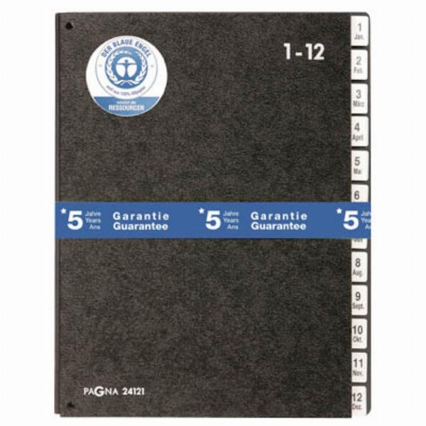 Jetzt Pagna Pultordner Classic 24121-04, 1-12 / Jan-Dez, schwarz, A4, 12 Fächer günstig kaufen.