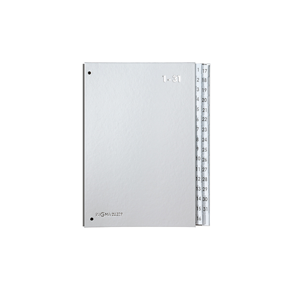 Die zwischenliegenden Blätter bestehen aus hochwertigem Spezialkarton und sind mit Sichtlöchern ausgestattet, die eine einfache Kennzeichnung und das schnelle Finden Ihrer Dokumente ermöglichen. Die überstehenden Kunststoff-Taben sind in der praktischen Registerteilung 1-31 angeordnet, sodass Sie problemlos auf Ihre Unterlagen zugreifen können.