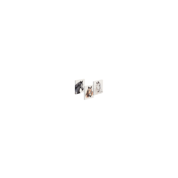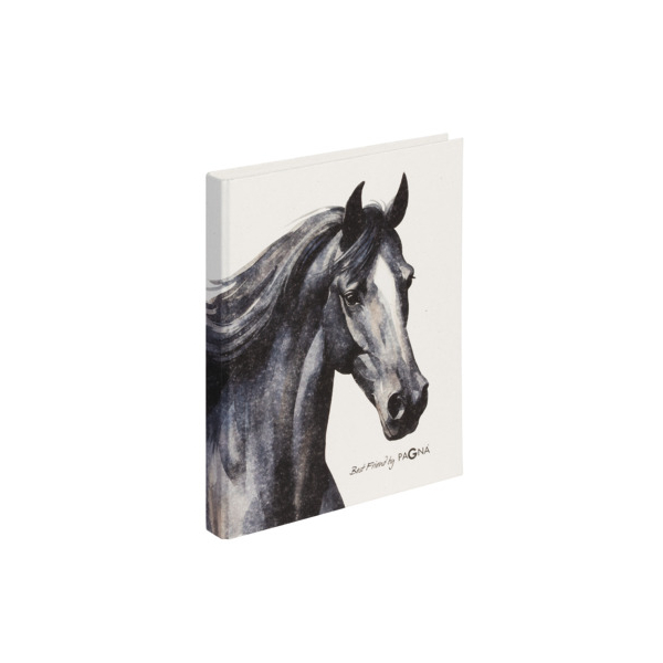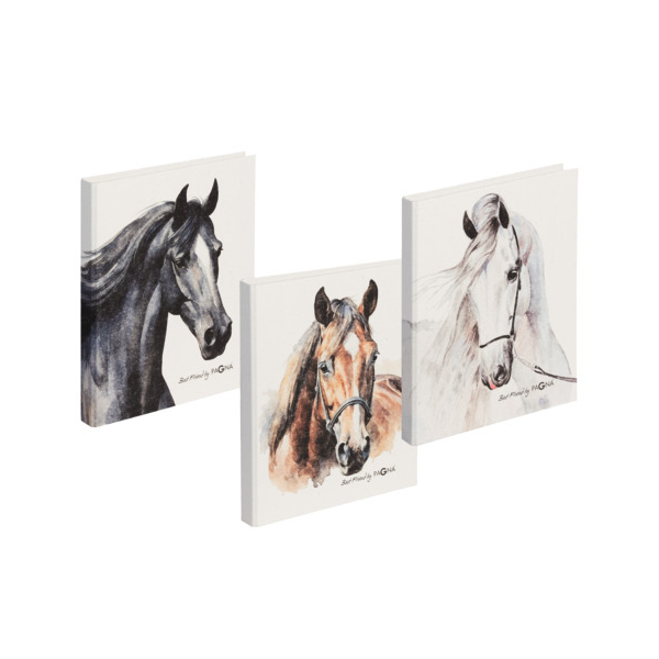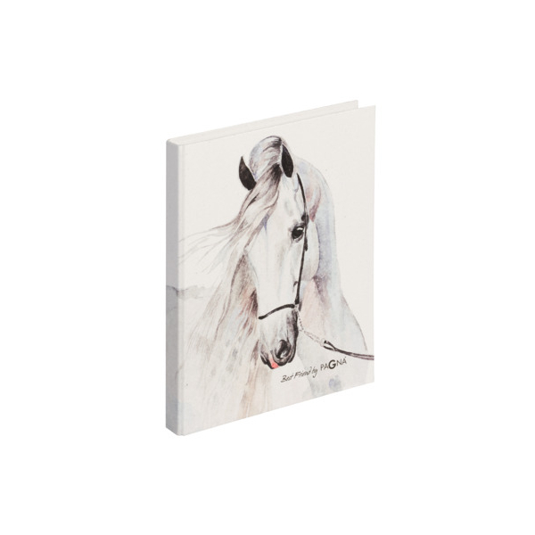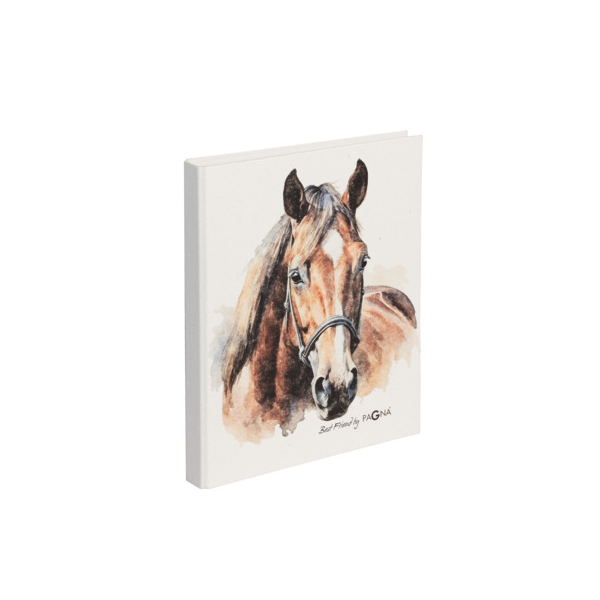 Ringbuch mit ökologischem RC-Papiereinband in Weiß und den Motiven black horse, white horse und brown horse. Ausgestattet mit einer praktischen 2-Ring-Mechanik für komfortables Arbeiten mit gelochten A4-Unterlagen.
