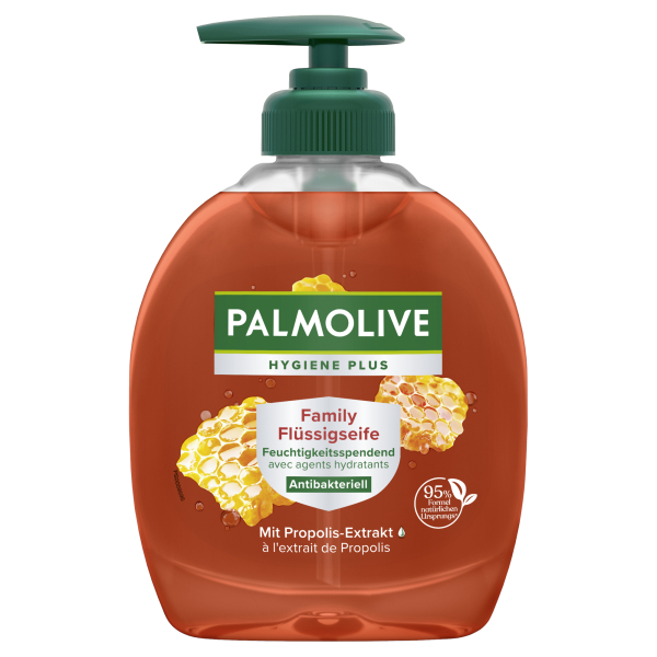 Pflege die Hände Ihrer ganzen Familie mit der Palmolive HYGIENE-PLUS family Flüssighandseife. Sie reinigt Ihre Hände hygienisch mit einem natürlichen antibakteriellen Inhaltsstoff. Unsere Flüssigseifen haben eine sanfte Formel mit Propolis-Extrakt, die dermatologisch getestet ist. Ihre Familie wird den wunderbaren Duft lieben.