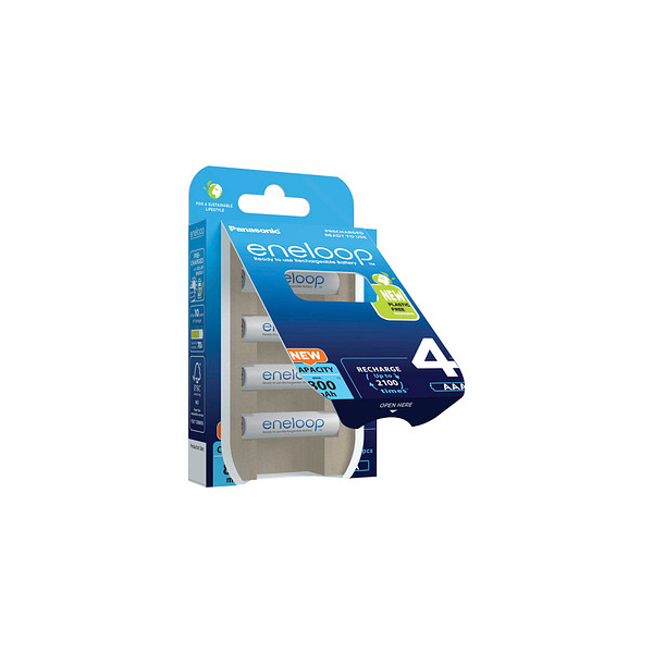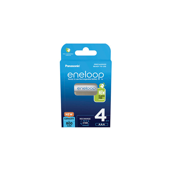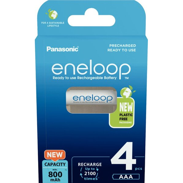 Panasonic eneloop BK-4MCDE/4BE Akkus. • Batterietyp: AAA (Micro / HR03) • Spannung: 1,2 Volt • Kapazität: 800 mAh • Batteriechemie: Nickel-Metallhydrid