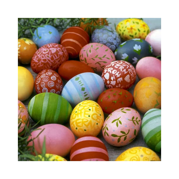 Die Serviette hat eine Größe von 33x33cm und besteht aus 3 Lagen. Durch die hochwertige Verarbeitung ist sie besonders reißfest und saugfähig. Das Eiermotiv ist fröhlich und passt perfekt zur Osterzeit.