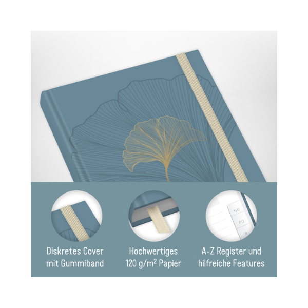 Entdecken Sie den Passwort-Organizer 10006-6 von PAPER und YOU, der Ihnen hilft, Ihre sensiblen Daten sicher und übersichtlich zu verwalten. Der Passwort-Organizer Blue Ginkgo bietet Platz für über 320 Einträge und ermöglicht eine einfache und sichere Verwaltung Ihrer persönlichen Daten. Mit einem praktischen Register (A-Z & Zahlen) finden Sie jederzeit schnell, was Sie suchen.