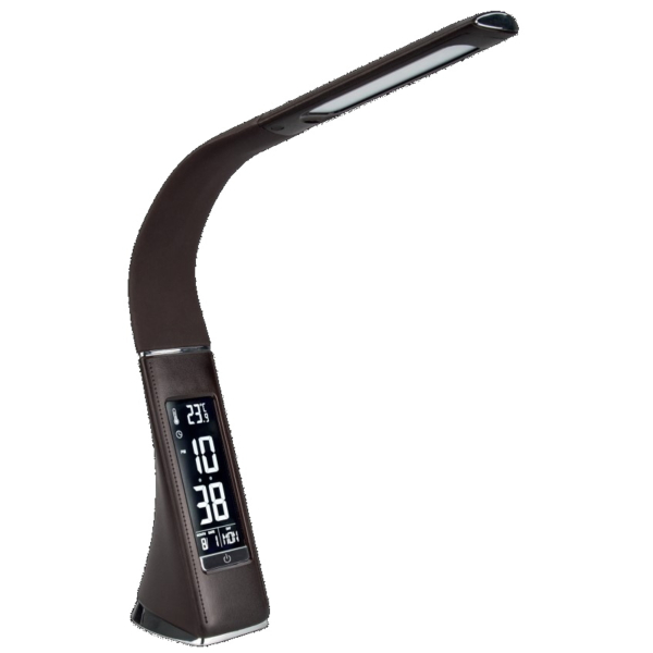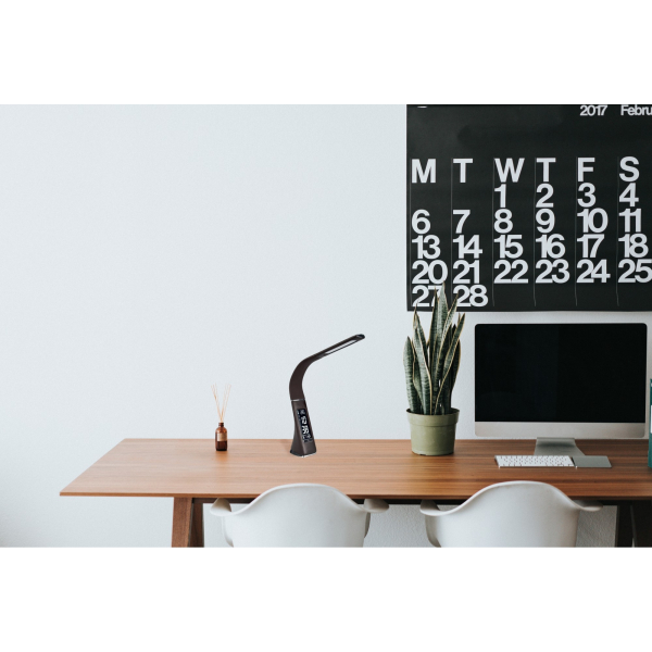 Eleganz erleuchtet Ihren Schreibtisch mit der LED-Schreibtischlampe Clark von PAPERFLOW! Diese stilvolle Lampe bietet Ihnen einen drehbaren Arm sowie einen dreh-, neig- und schwenkbaren Leuchtkopf, der es Ihnen ermöglicht, das Licht genau dort hin zu lenken, wo Sie es benötigen. Genießen Sie eine Variation der Lichtintensität mit dem 3-stufigen Touch-Dimmer am Leuchtfuß, und profitieren Sie von den digitalen Funktionen, die Uhrzeit, Datum, Alarm und Temperatur anzeigen.