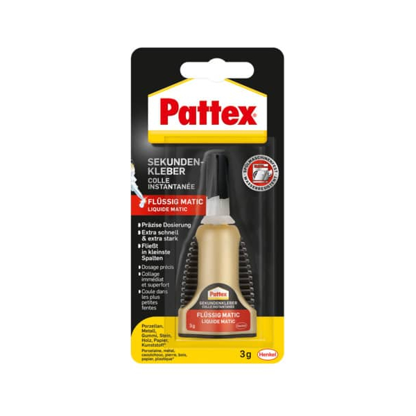 Entdecken Sie den Sekundenkleber von Pattex – den Sekundenkleber Matic flüssig! Dieser leistungsstarke und vielseitige Kleber ist der perfekte Begleiter für Ihre Bastel- und Reparaturprojekte. Mit 3g in einer praktischen Kunststoffflasche erhalten Sie einen Kleber, der speziell entwickelt wurde, um auch in die kleinsten Spalten zu fließen.