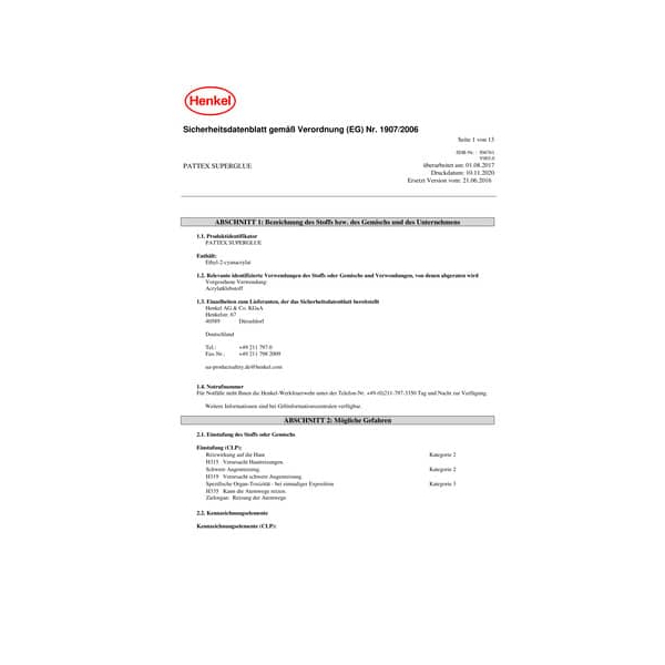 zum Datenblatt| Pattex Pattex in Sekundenkleber anzeigen | |