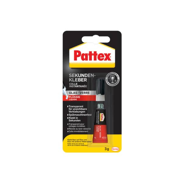 Entdecken Sie den 9H PSV1C 3g Blister Spezialkleber von Pattex, ideal für all Ihre Glasprojekte. Dieser Sekundenkleber der Serie Glas Flüssig bietet eine hohe Anfangshaftung und ist speziell für das Kleben von Glas auf Glas, Metall auf Glas und verschiedenen Glasarten wie Kristallglas und Schmuckglas entwickelt.