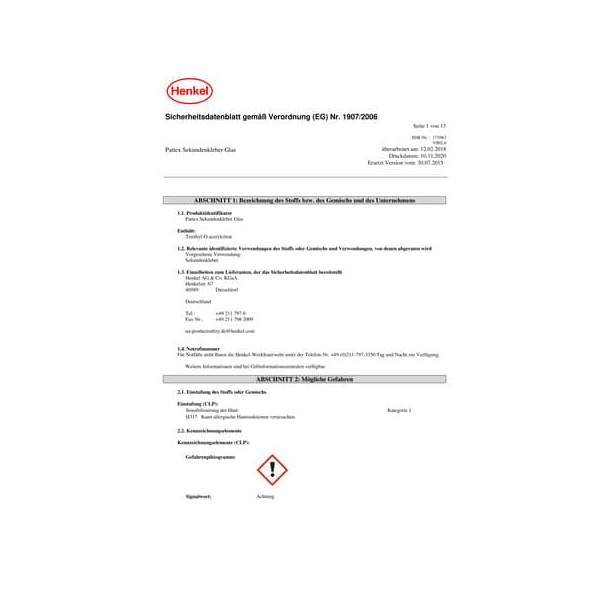 EUH202 Cyanacrylat. Gefahr.