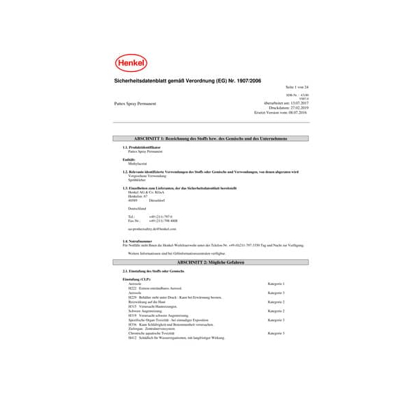 | Henkel AG & Co. KGaA, Henkelstr. 67, 40589 Düsseldorf-Deutschland, Telefon-Nr.: +49 (211) 797 0, Fax-Nr.:+49 (211) 798 4008, Email: ua-productsafety.de@henkel.com | |