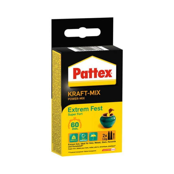Entdecken Sie den starken Zweikomponentenkleber von Pattex, den 9H PK6FT. Dieser hochwertige Zweikomponenten Kleber in der praktischen Verpackung mit 2x12g bietet Ihnen eine zuverlässige Lösung für Ihre anspruchsvollen Verklebungen. Der Epoxidharz-Kleber ist nach nur 60 Minuten handfest und erreicht nach 24 Stunden seine volle Endfestigkeit.