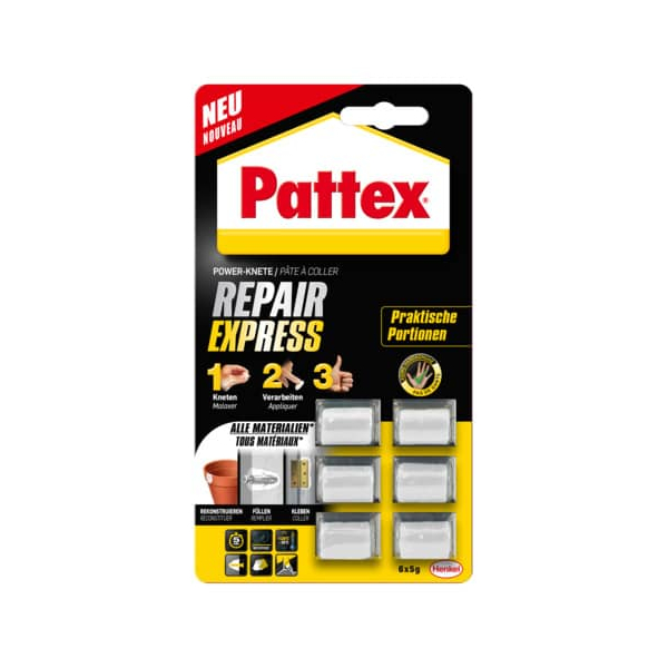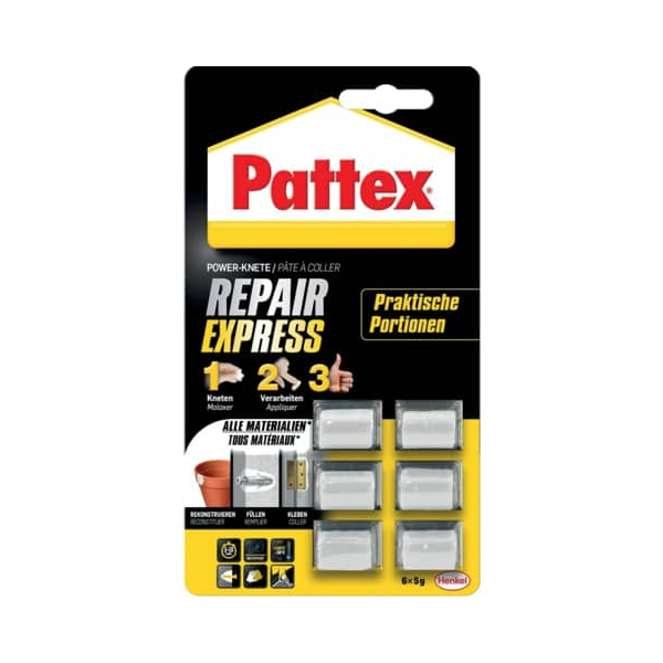 Jetzt Pattex Zweikomponentenkleber 9H PRX15 Repair Express Powerknete, 6x5g, permanent günstig kaufen.