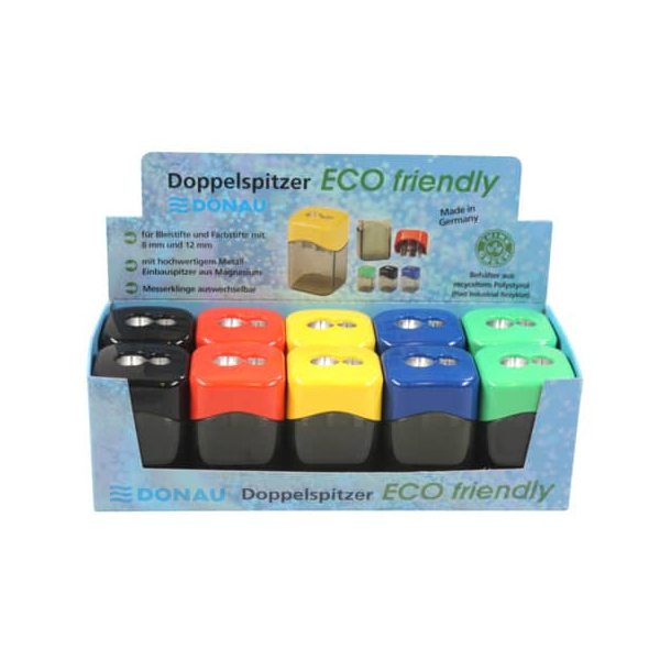 Entdecken Sie den 7821010-99 Dosenspitzer von PBs, einem umweltfreundlichen Produkt, das Funktionalität und Nachhaltigkeit vereint. Dieser doppelte Spitzer überzeugt durch sein Gehäuse aus recyceltem Polystyrol (post-industrial) und einen langlebigen Metalleinbauspitzer aus Magnesium, der mit einer auswechselbaren Klinge ausgestattet ist. Er wurde speziell für Rechtshänder entwickelt und eignet sich sowohl für Bleistifte als auch für Farbstifte mit einem Durchmesser von 8 mm und 12 mm.