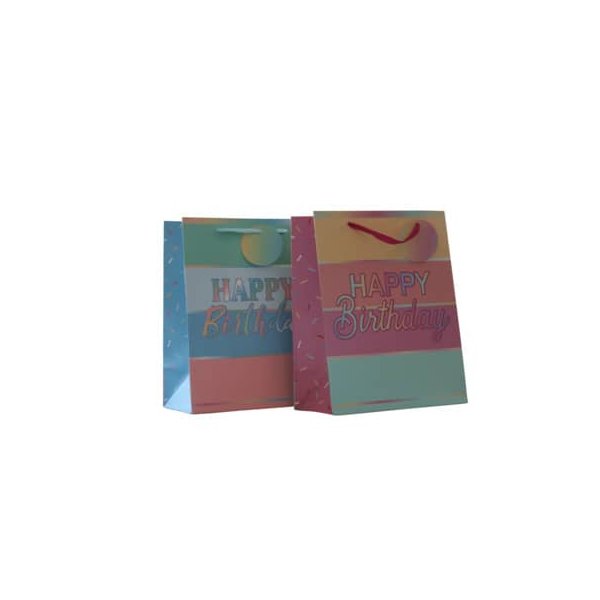 Geschenktasche 55044, • Anlass: Geburtstag • Ausführung: Schleifenband mit Anhänger • Motiv: 2 Motive sortiert • Farbe: bunt • Breite: 260mm • Höhe: 32cm • Tiefe: 12cm