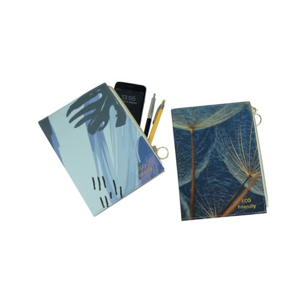 Das Notizbuch hat die Größe A5 und ist mit einem integrierten Schlamper ausgestattet, der aus Recycling-PET gefertigt ist. Damit setzen Sie nicht nur auf Stil, sondern auch auf Nachhaltigkeit. Der Einband und der Schlamper sind in bunten Farben gehalten, die gute Laune verbreiten!