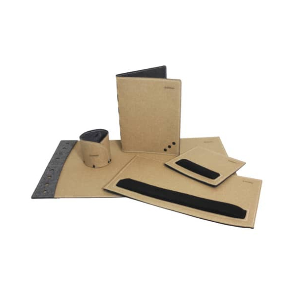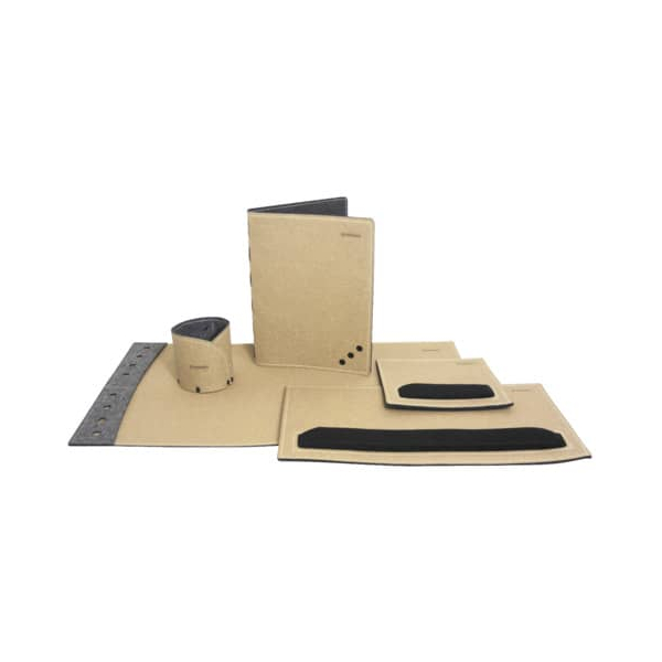 | aus gemahlenem Naturleder und recycelten Filz-Fasern aus gemahlenem Naturleder und recycelten Filz-Fasern in Ringbücher anzeigen | |