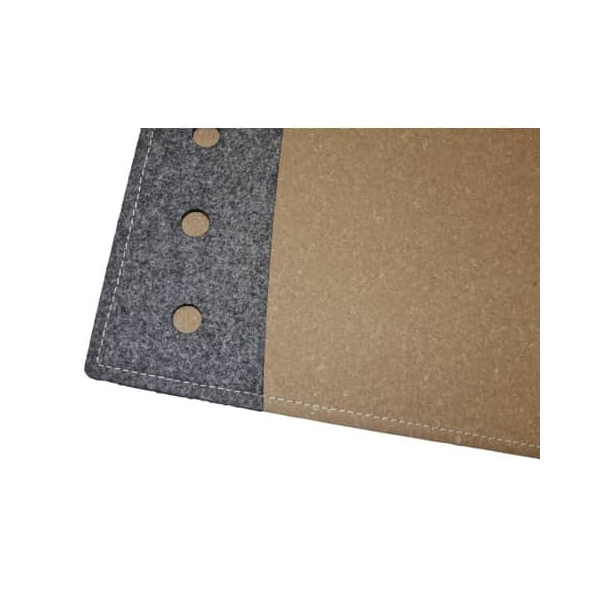 Die Schreibunterlage besteht aus hochwertigem gemahlenem Naturleder und recycelten Filz-Fasern. Sie bietet nicht nur eine ansprechende Optik, sondern auch einen verantwortungsvollen Umgang mit Ressourcen.
