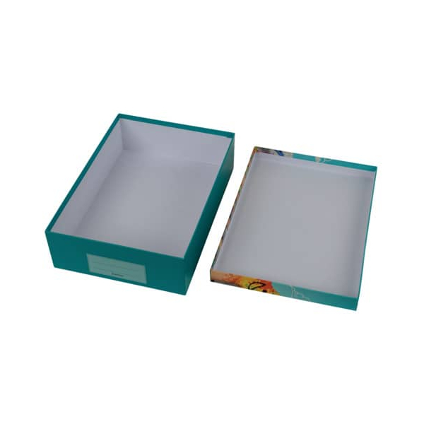 Der Deckel hat die Maße von 33,5x24x3cm, während der Boden 33x23,5x9cm groß ist. Innen erstrahlt die Schachtel in einem schicken weißen Farbton, der einen klaren Kontrast zur bunten Außenseite bietet.