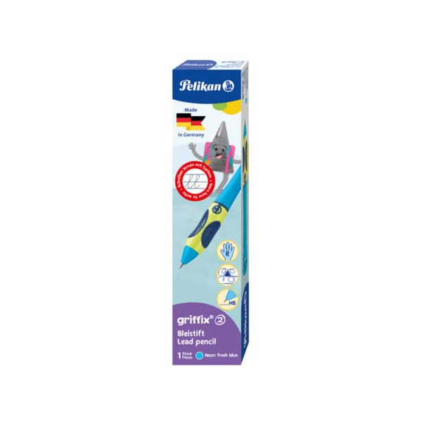 Entdecken Sie den Druckbleistift griffix Schreiblernstift von Pelikan, der speziell für die Bedürfnisse von Kindern entwickelt wurde. Mit einer Härte von HB und einer Strichstärke von 2,0mm ist dieser Stift ideal für kleine Hände, die das Schreiben lernen. Die ansprechende Farbe neon fresh blue zieht die Aufmerksamkeit auf sich und macht das Schreiben zu einem Vergnügen.