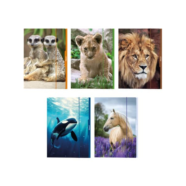 Entdecken Sie die farbenfrohe Sammelmappe 276887 von Pelikan, die ideal für die Aufbewahrung Ihrer Zeichnungen und wichtigen Dokumente ist. Diese Sammelmappe im A3-Format begeistert nicht nur durch ihre ansprechenden 5 Tiermotive, sondern bietet auch eine praktische und umweltfreundliche Lösung zur Organisation Ihrer Unterlagen.