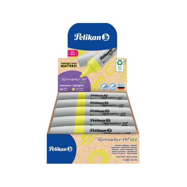 Der Textmarker ist aus 80 % Recyclingmaterial hergestellt und somit umweltfreundlich. Er ist mit einer universellen, lichtbeständigen Universaltinte auf Wasserbasis gefüllt, die floureszent ist und ein Schattenfrei kopieren ermöglicht. Damit eignet er sich hervorragend für Schule, Büro oder kreative Projekte.