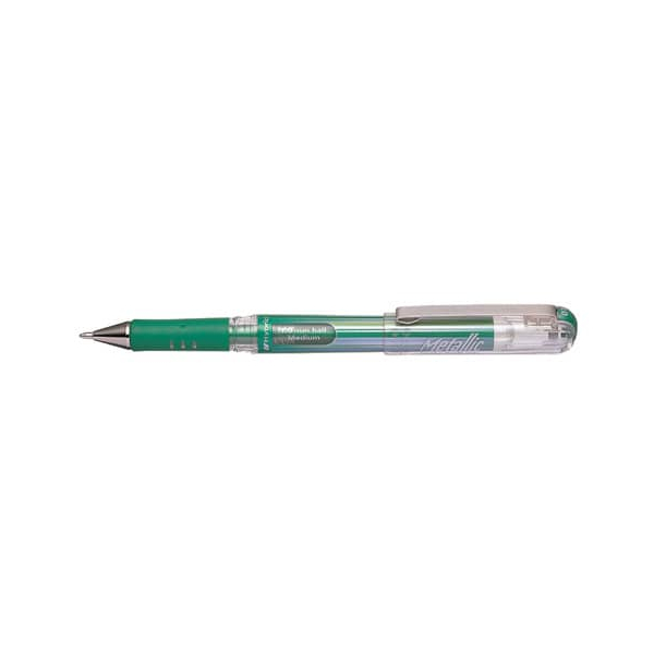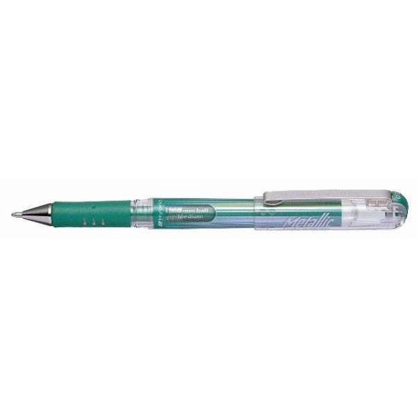 Pentel präsentiert den Gelschreiber Hybrid met. grün. Mit transparenter Kappe und auswechselbarer Mine KFR10M, Metallspitze. Wasserfeste, lichtechte und deckende Pigmenttinte. Ideal für farbige, dunkle und helle Papiere. Schaft aus Kunststoff (ohne PVC). Gummierte, ergonomisch geformte Komfortgriffzone. Metallclip. Tintenstandsichtfenster.