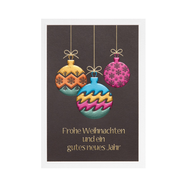 Die Weihnachtskarten zeichnen sich durch ihr einzigartiges Design aus, das mit einer speziellen Folienveredelung versehen ist. Dies sorgt für eine besondere Haptik und einen luxuriösen Glanz, der die Empfänger beeindrucken wird.