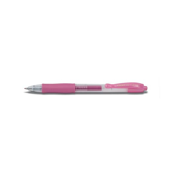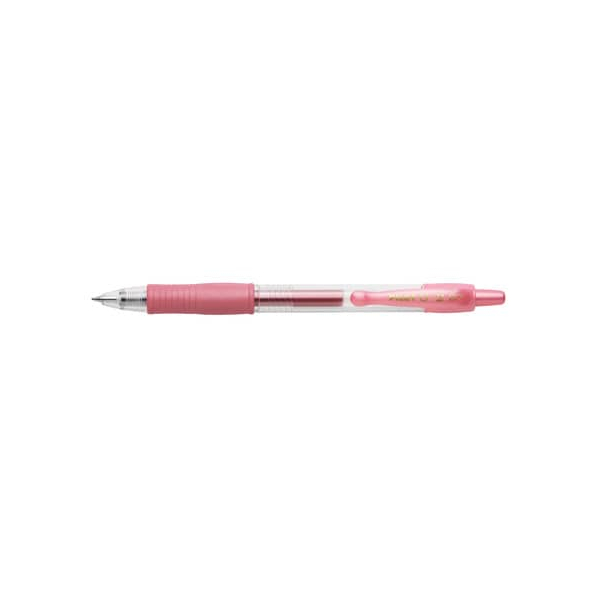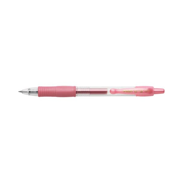 Pilot 2605-079 G-2 07 Gelschreiber in pinkmetallic/transparent mit gummierter Griffzone • nachfüllbar • Schreibfarbe: metallic pink • Strichstärke: 0,4mm (Kugel-Ø: 0,7mm) • Minenschutz: mit Druckmechanik