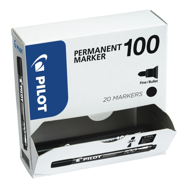 Pilot Permanentmarker 100, 4010001P20, Packung, schwarz, 1mm Rundspitze