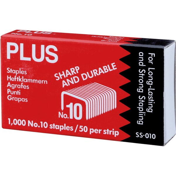 PLUS JAPAN Heftklammern No. 10, 30089, Edelstahl verzinkt, Heftleistung 10 Blatt max.