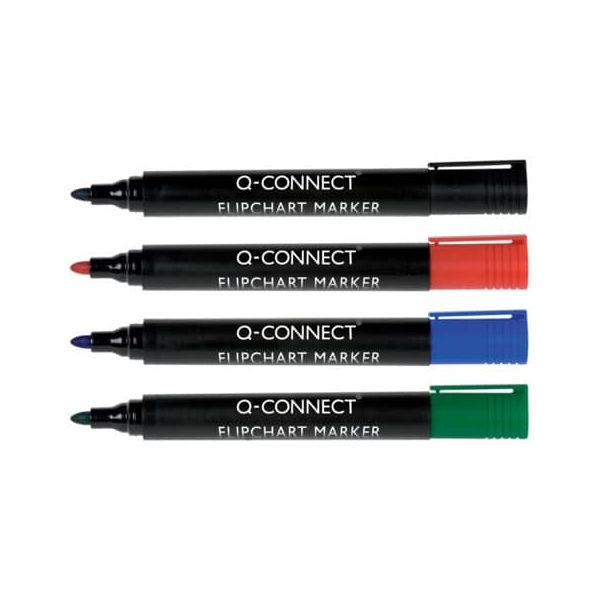 Q-connect Flipchartmarker KF01551, Packung, rot,blau,grün,schwarz, 2-3mm Rundspitze