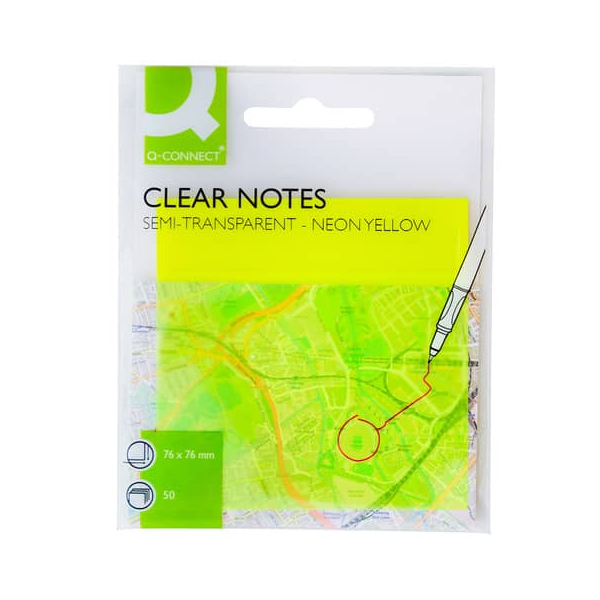 Q-connect Haftnotizen KF10369, 76x76mm, transparent/gelb, quadratisch