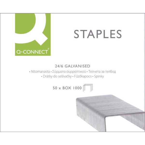 Q-connect Heftklammern 24/6, KF01278, Stahldraht verzinkt, Heftleistung 2-30 Blatt max.