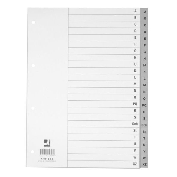 Q-connect Kunststoffregister KF01808, A bis Z 24-teilig, A4, graue Taben, 24-teilig | Q-connect Kunststoffregister KF01843, A bis Z 24-teilig, A4+, graue Taben, 24-teilig | Q-connect Kunststoffregister KF01817, A bis Z, A4, graue Taben, 20-teilig | Donau Kunststoffregister 7722095-13, A bis Z, A4, graue Taben, 24-teilig | Leitz Kunststoffregister 1261-00-85, A bis Z 24-teilig, A4+, 120µm, graue Taben, 24-teilig + Deckblatt | Q-connect Kunststoffregister KF01819, Jan bis Dez, A4, 120µm, graue Taben, 12-teilig | Q-connect Kunststoffregister KF01844, A bis Z, A4+, graue Taben, 20-teilig | Alpedia Kunststoffregister 24742, 12 bis 1, A4, 120µm, graue Taben, 12-teilig | Donau Kunststoffregister 7730095-13, A bis Z, A4, graue Taben, 20-teilig | Q-connect Kunststoffregister KF01809, A bis Z, A4 halbe Höhe, graue Taben, 20-teilig |
