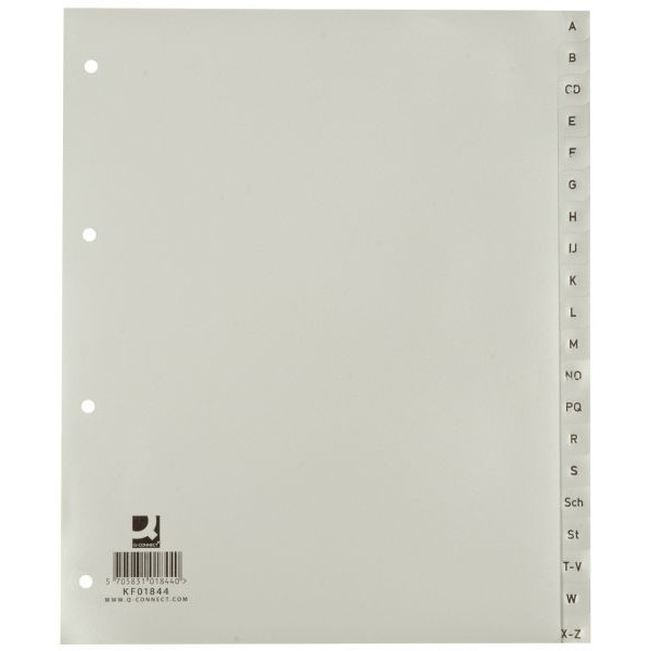 Q-connect Kunststoffregister KF01844, A bis Z, A4+, graue Taben, 20-teilig