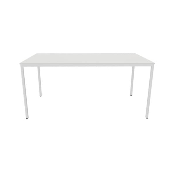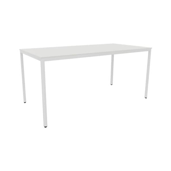 Schreibtisch Q-connect KF14179 • Höhe: 75cm • Platte: weiß, 160x80cm (BxT), rechteckig, Spanplatte mit Melaminharzbeschichtung, 22mm • Gestell: weiß, 4-Fuß-Gestell, Metall • ohne Rollen • Anlieferung: komplett montiert