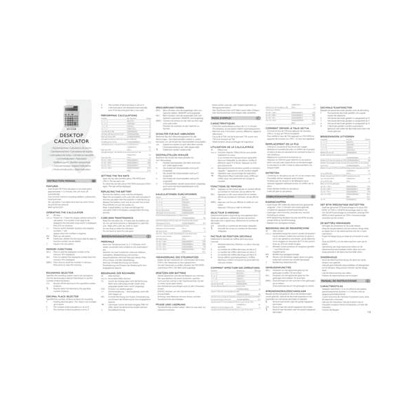 Der Tischrechner ist mit einem großen LCD-Display ausgestattet, das Ihnen eine klare und deutliche Anzeige Ihrer Ergebnisse ermöglicht. Zu den nützlichen Funktionen gehören unter anderem die Speicherfunktion, die Prozentrechnung, eine Mehrwertsteuer +/- Funktion, die Quadratwurzelfunktion, eine 5/4-Rundung sowie die Auswahl der Dezimalstellen. Dank dieser Funktionen ist er perfekt für den Einsatz im Büro oder zu Hause geeignet.