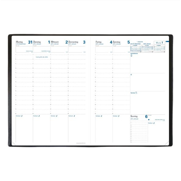 Wochenkalender 24263Q, Prenote DE, schwarz, 1 Woche / 2 Seiten, 21x29,7cm (A4), 2024