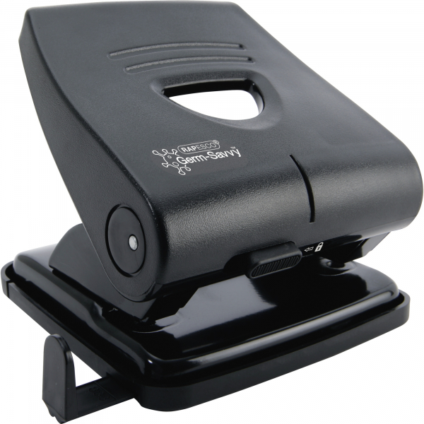 Rapesco Bürolocher Germ-Savvy 827-P PF827PB2, schwarz, bis 3mm 30 Blatt, mit Anschlagschiene