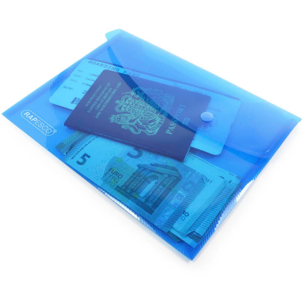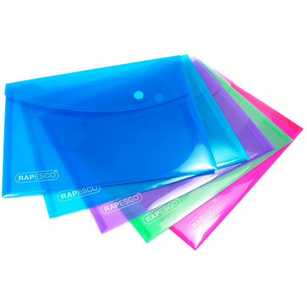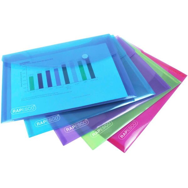 Rapesco 0689 Dokumententasche • Format: DIN A5 • Farbe: farbig sortiert • Öffnung: lange Seite offen • Material: Polypropylen (PP)