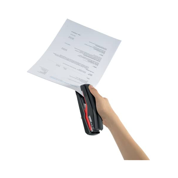 Das schwarze und rote Design kombiniert mit einer ergonomischen Form macht das Heftgerät nicht nur funktional, sondern auch ansprechend. Die Oberlademechanik ermöglicht ein einfaches Befüllen, und das Gerät bietet eine rutschfeste Oberfläche für einen sicheren Halt.